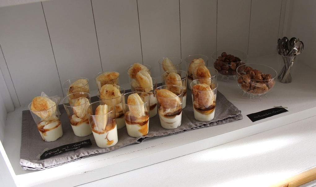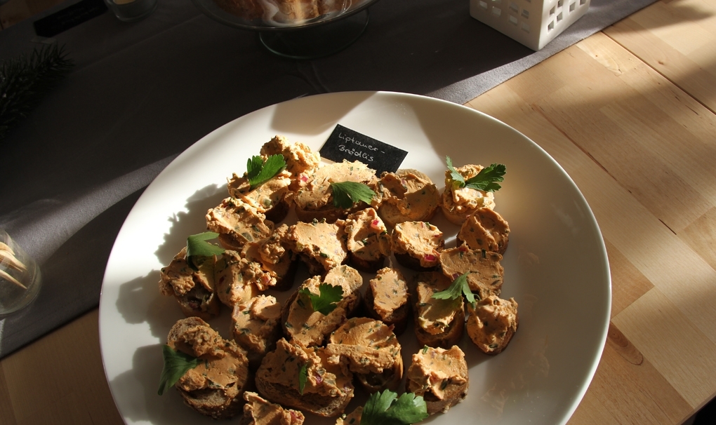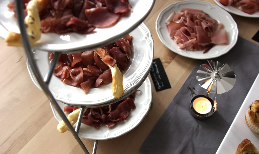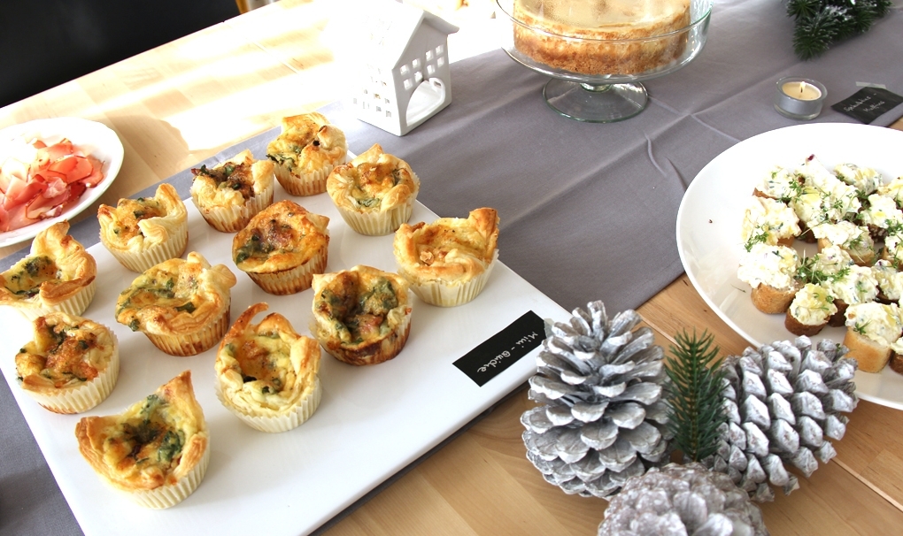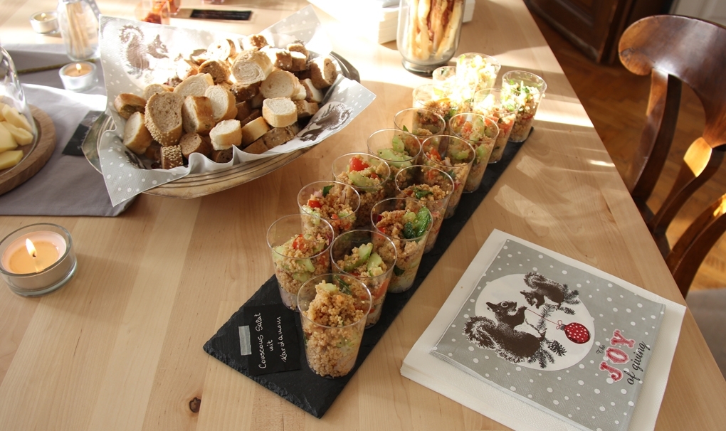 Kredenzt wurde diesmal: Geräuchertes aus der Weststeiermark, Käsiges vom Berg, Brödlis mit Erdäpfelkas und Liptauer, Karamellen mit Fleur de Sel, Cheescake mit Swirl, Speckstangerl, getrüffelte Eierspeis, Bratäpfelchen, Spekulatius-Muffins, Cous Cous Salat mit Kardamom, selbstgemachtes Vanille Joghut mit Knusper und Mini Quiches. Lebkuchen und Kekse durften natürlich nicht fehlen …