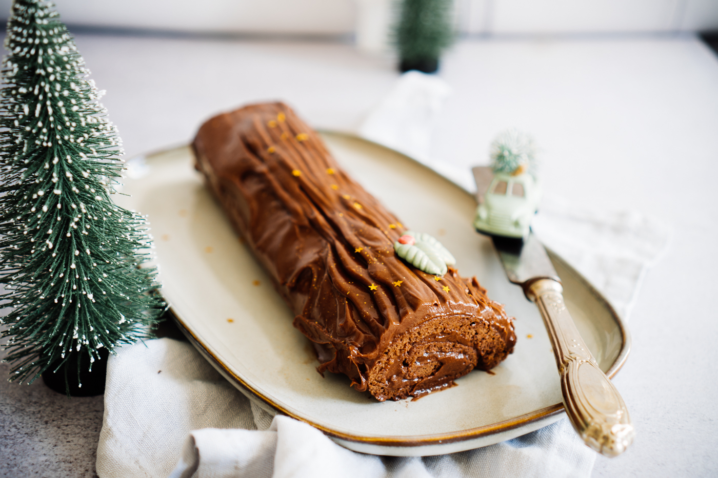 Der Bûche de Noël lässt sich wunderbar vorbereiten und über Nacht kühl stellen.