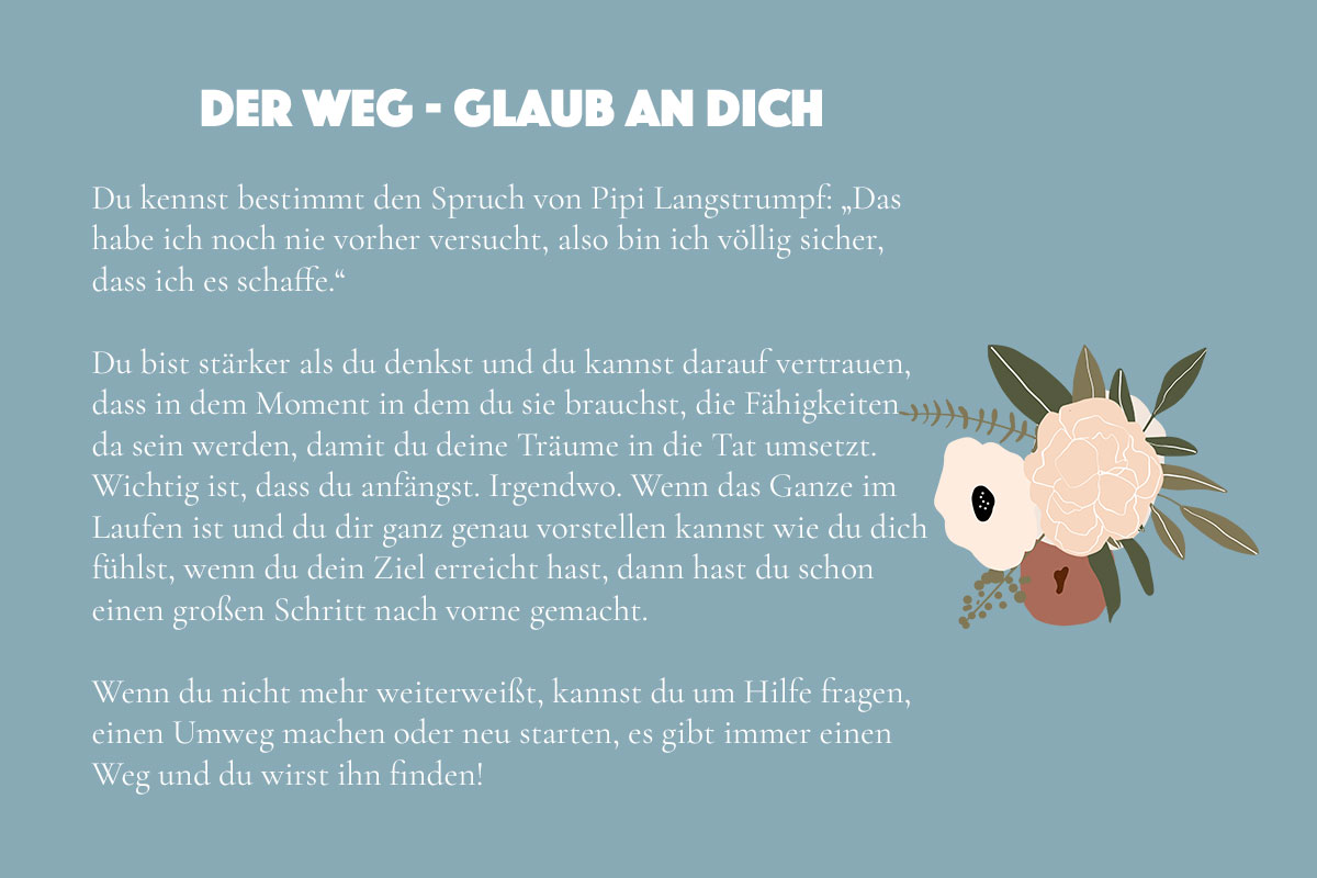 „Der Wille kann Berge versetzen – so kraftvoll, wie du es dir nie erträumt hättest! Ich freue mich, wenn du es ausprobierst!“ (Karin @jubeltage)
