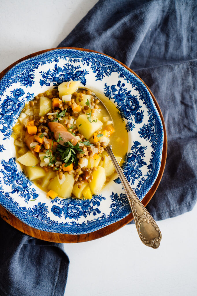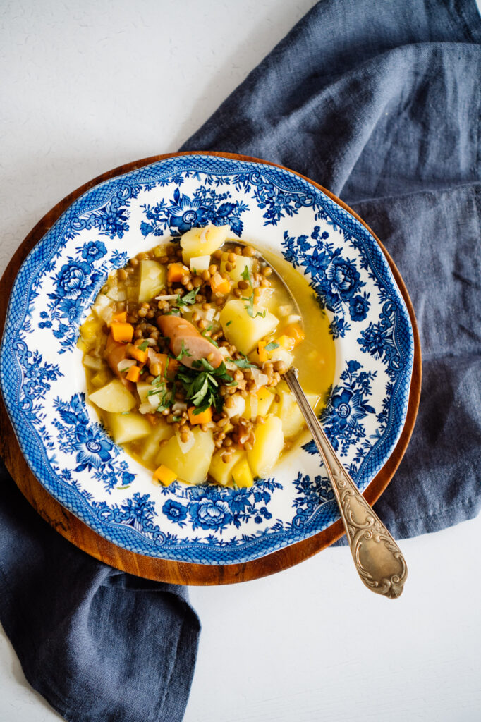 In einem Alltag, der oft von Hektik, schneller Technologie und Terminen geprägt ist, sehne ich mich oft nach den einfachen Dingen im Leben. Vorallem, wenn völlig überraschend etwas Warmes auf den Tisch muss. Da helfe ich mir selbst gerne indem ich auf einfache Gerichte aus meiner Kindheit zurück greife. So wie der schnelle Linseneintopf, der mich gerade in der kalten Jahreszeit aus so manch brenzliger Situation herauswurschtelt.
