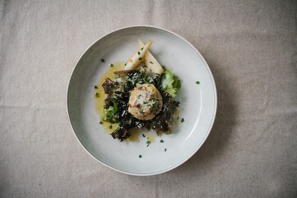 Rohnen (Rote Rüben) Tartar mit Kren-Rahm (Meerrettich) und Brotchips   Ich bin bestimmt kein großer Fan von Rohnen. Von diesen schon und das will was heißen.   Zutaten Rohnen aus dem Backofen (4 Personen, als Vorspeise) 2-3 kleine, feste Rote Rüben (Rohnen) Salz und Zucker für das Bett, Thymianzweige, Rosmarinzweige, Backpapier   Rohnen Tartar Salz, frisch gemahlener Pfeffer, etwas