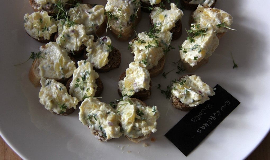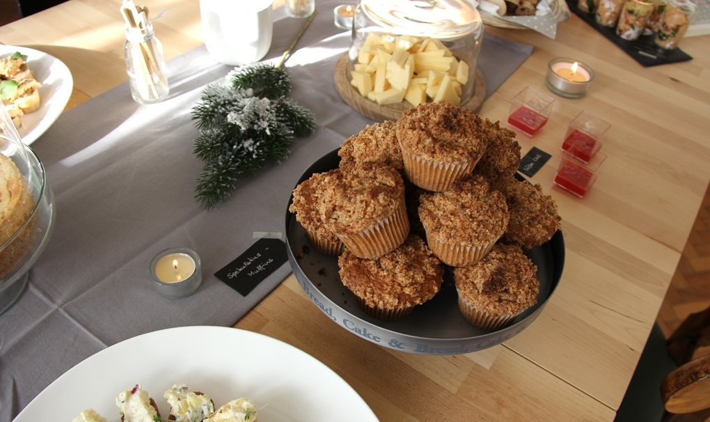Kredenzt wurde diesmal: Geräuchertes aus der Weststeiermark, Käsiges vom Berg, Brödlis mit Erdäpfelkas und Liptauer, Karamellen mit Fleur de Sel, Cheescake mit Swirl, Speckstangerl, getrüffelte Eierspeis, Bratäpfelchen, Spekulatius-Muffins, Cous Cous Salat mit Kardamom, selbstgemachtes Vanille Joghut mit Knusper und Mini Quiches. Lebkuchen und Kekse durften natürlich nicht fehlen …